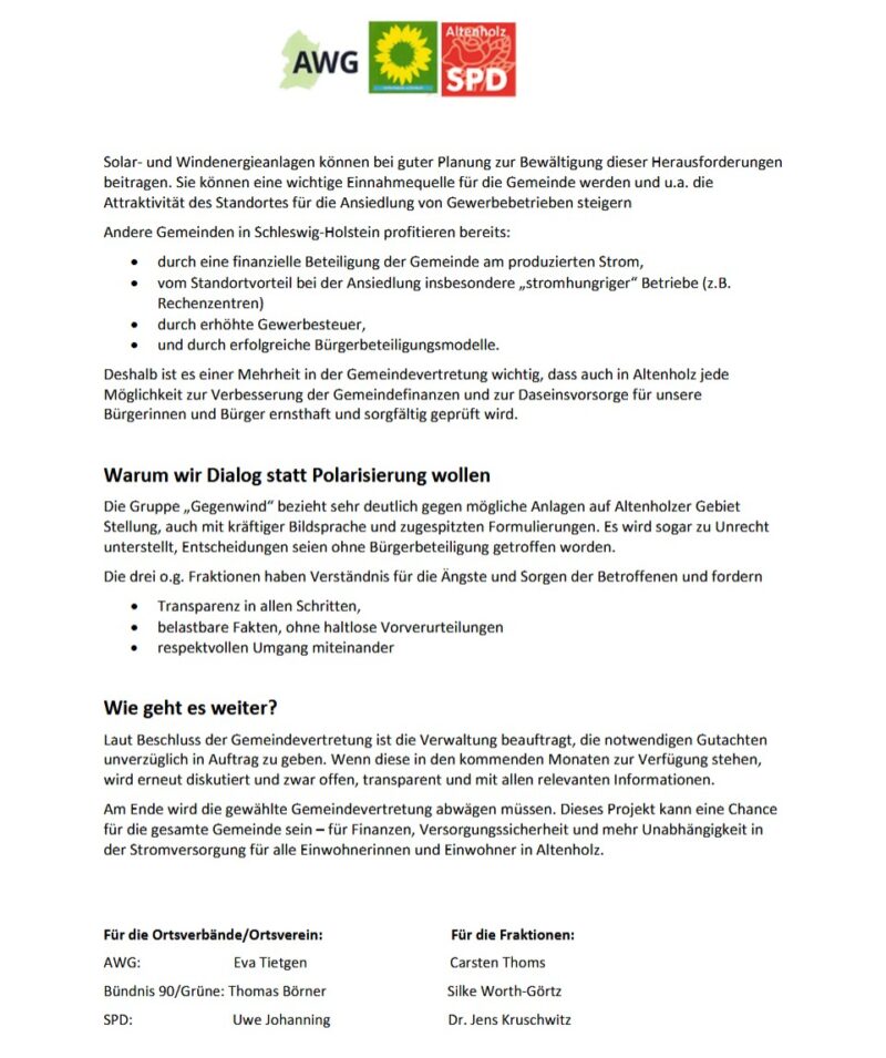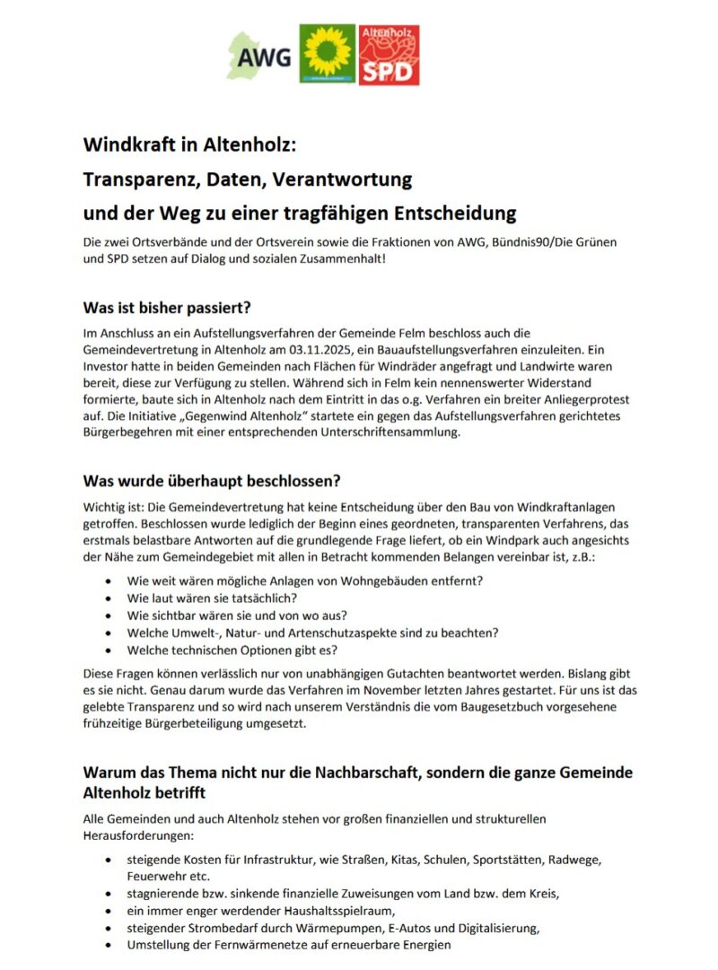 Windkraft in Altenholz – eine Stellungsnahme